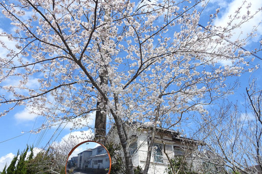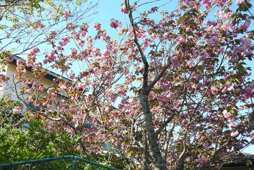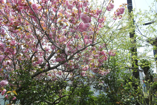 八重桜は、長男の誕生記念に若木を植樹したもので、樹齢としては60年前後になるものです。