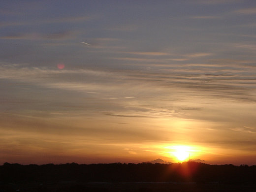 熊吉小屋周辺の里山での冬の夕日を伝えます。