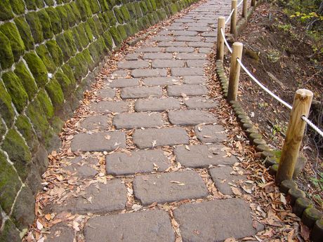13:16 苔生した石垣と石畳