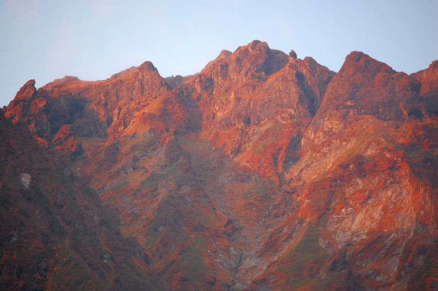 6:19 朝日が昇ると、頂が赤く染まりました。