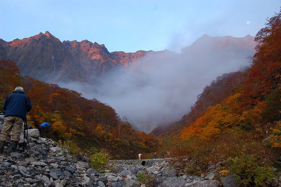 芝倉沢まで進み、そこから戻ってみると、朝とは随分雰囲気が変わって明るい一ノ倉沢が待っていました。一般の 観光客も増え、賑わいも比べものになりません。次回訪ねるときは少し沢を遡り、新たなカメラポジションを探し てみたいと思います。