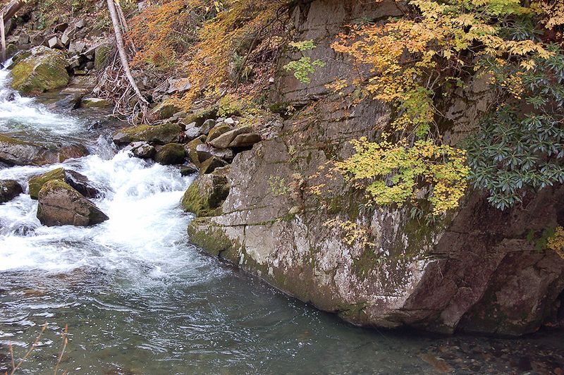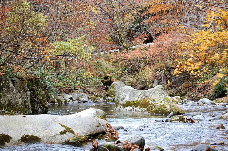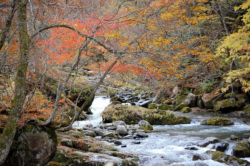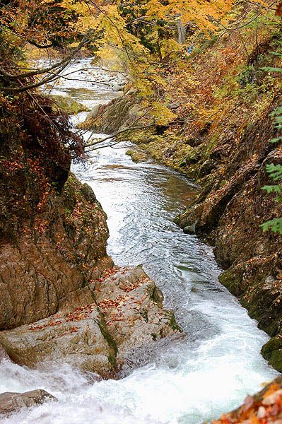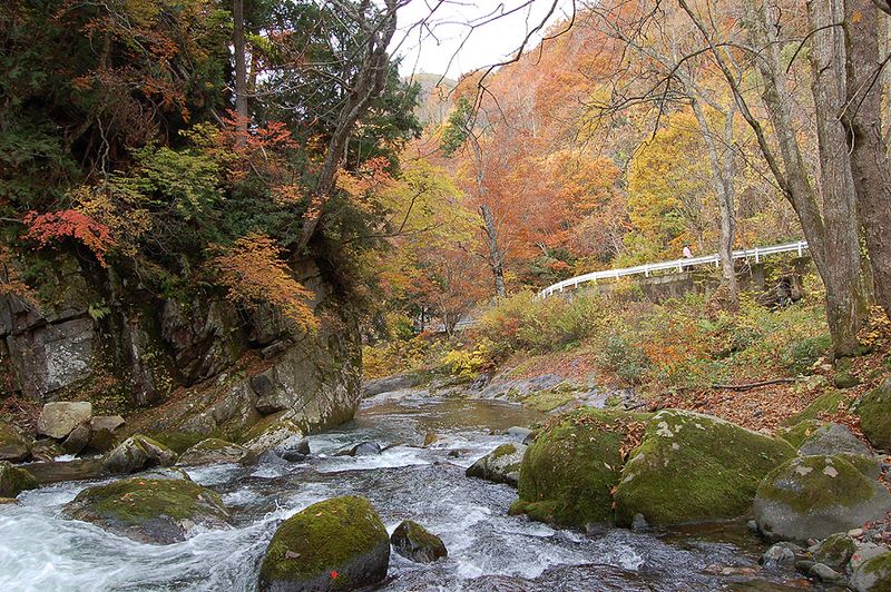 奈良俣ダムを出て、湯の小屋川沿いに紅葉を楽しみながら照葉峡・奥利根水源の森を経て坤六峠に向かいます。