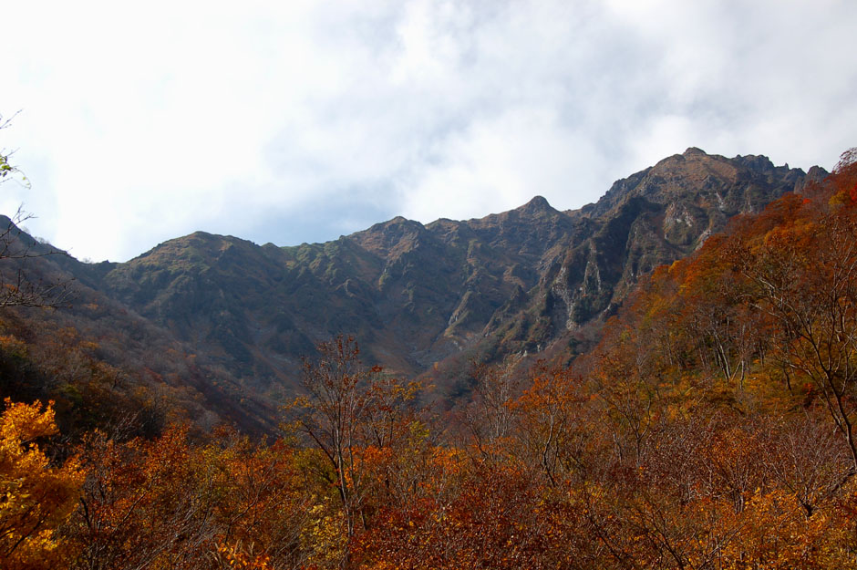 到着時と打って変わって、車の洪水状態で大変な有様でしたが、路肩の駐車や対向車をかわしながらマチガ沢まで 戻ります。行きには気付かなかったポイントに停車、大急ぎで数枚の写真を撮り、通行の邪魔にならないようにそ の場を離れることにしました。
