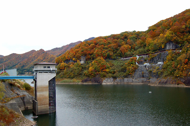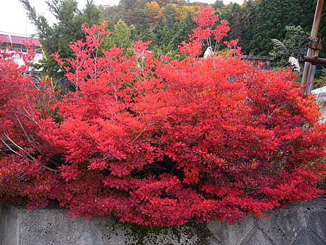 藤原湖は粟沢から右折して利根川沿いに進み、藤原ダムの駐車場に入ります。ここで撮影後、ダム上を通過して 藤原湖沿いに走りましたが、撮影ポイントを上手く探すことが出来ませんでした。須田貝ダムの近くでは見事に 紅葉したドウダンツツジが目にいり、一寸立ち寄り写真を撮りました。