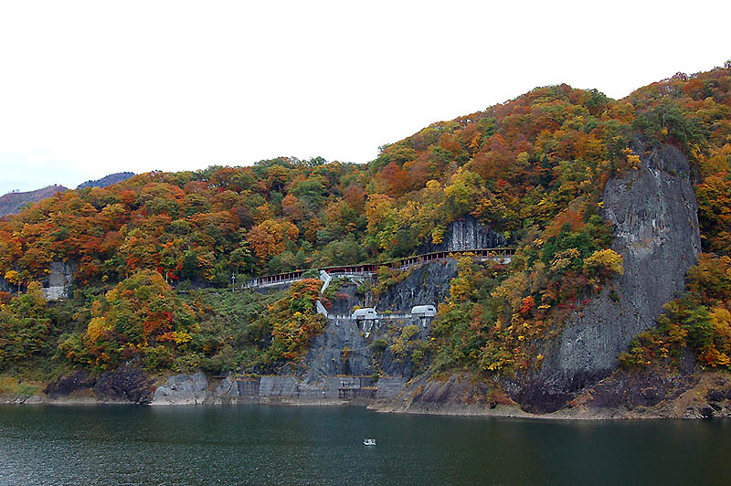 ペンションを出発して谷川岳方面に走り、JR湯檜曽駅の少し手前を右折して藤原湖へと進みます。