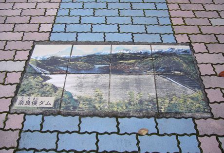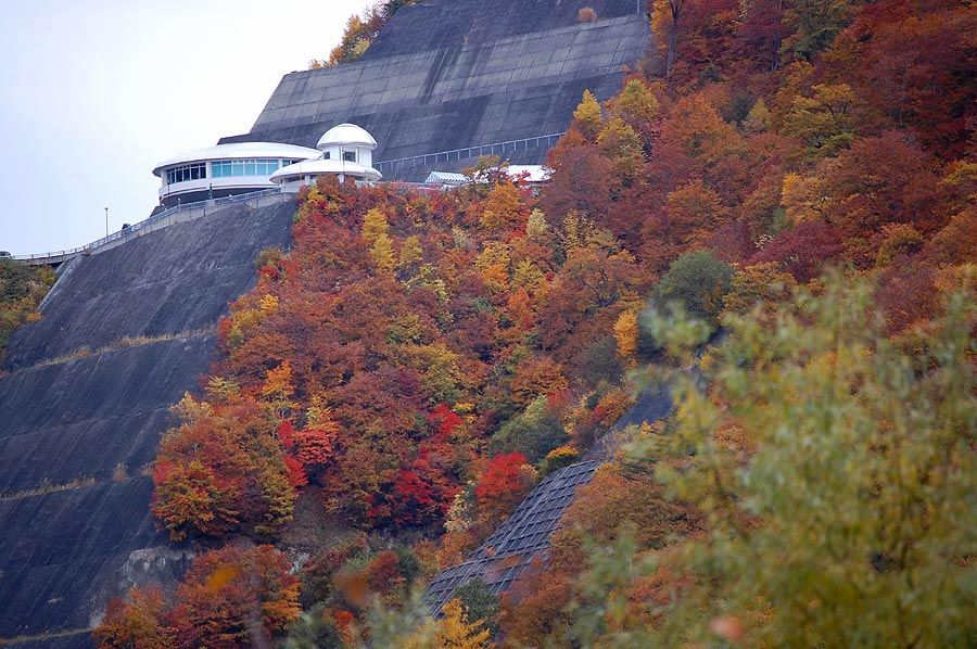 車をダム下の駐車場に入れると遊歩道の紅葉を楽しみながらダムを上り、奈良俣サービスセンターへと向かいま す。ダムの天端歩道(高さ約150m)に通じる遊歩道は、約700段の石段が待っていました。