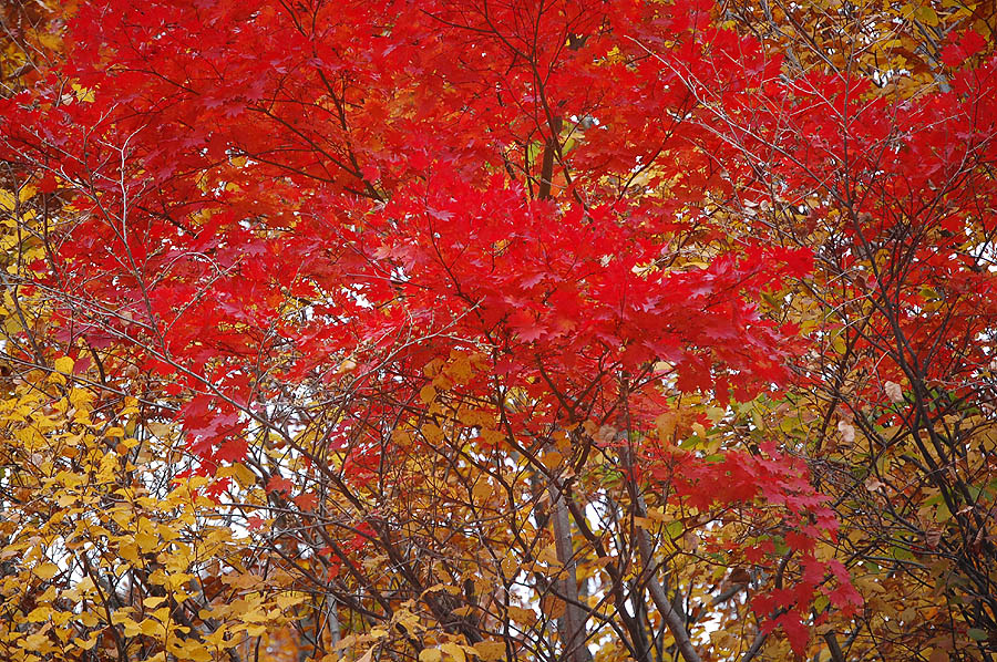 10:32 鮮やかな紅葉(写真5枚目、右手中央の紅葉の下まで進みました。)