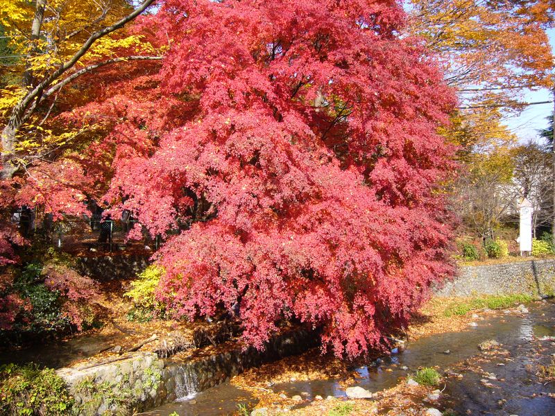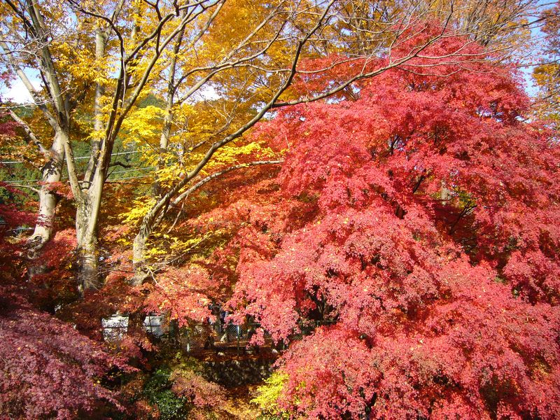 私にとっては40数年振りの訪問です。その時は桜の季節でしたが、今回初めて紅葉狩りを楽しみました。紅葉は ほぼピークを迎えた感がありますが、今年の傾向として色付きはあまりよくないようです。あちこちで紅葉する前 に落葉する木々が見られます。