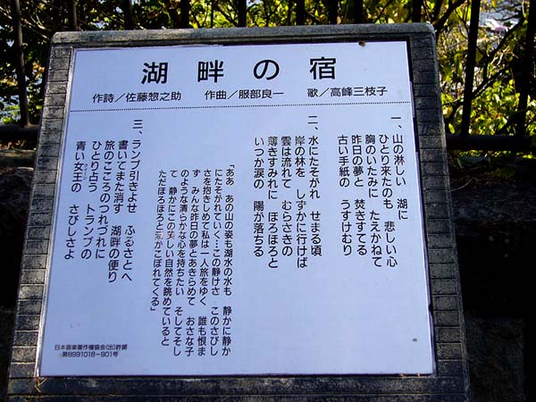 「湖畔の宿」由来板