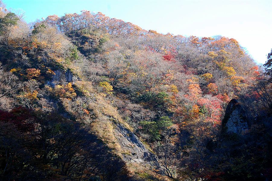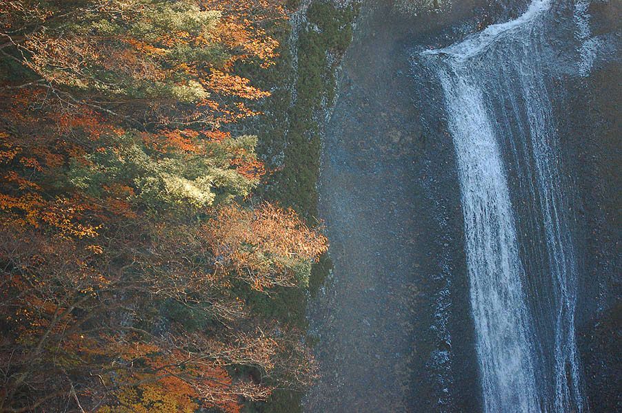 袋田の滝では時間的に逆光となり、思うような撮影は出来ない状況です。しかも紅葉のピークは越えたようで新 観瀑台からのポイントは残念な結果に終わりました。