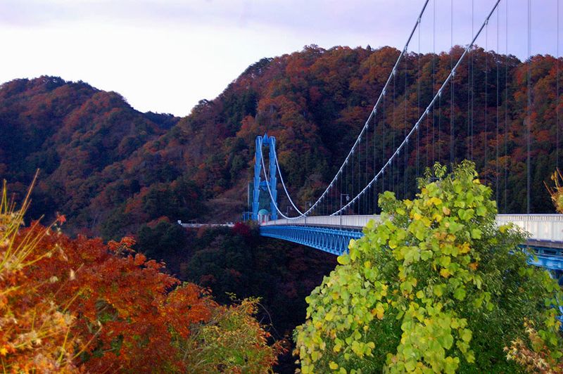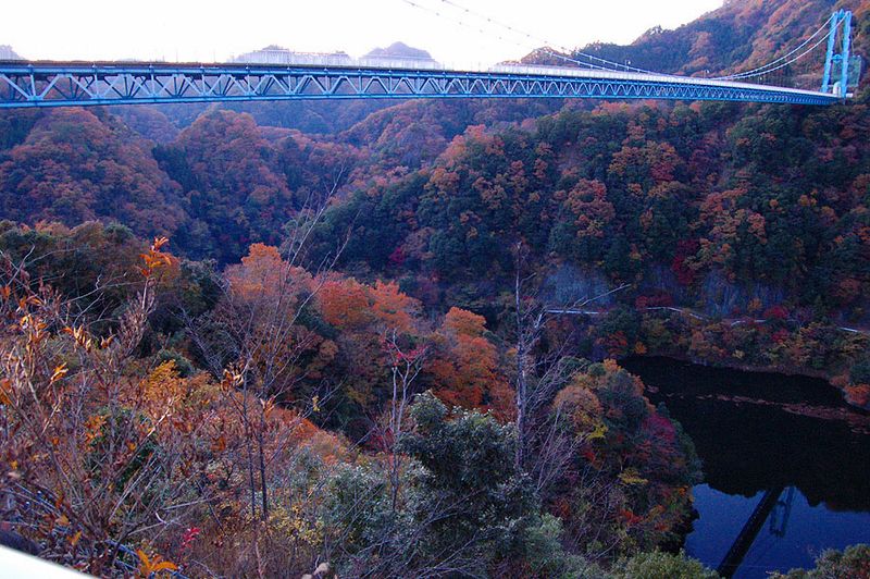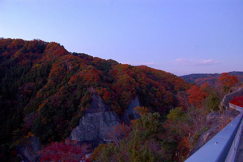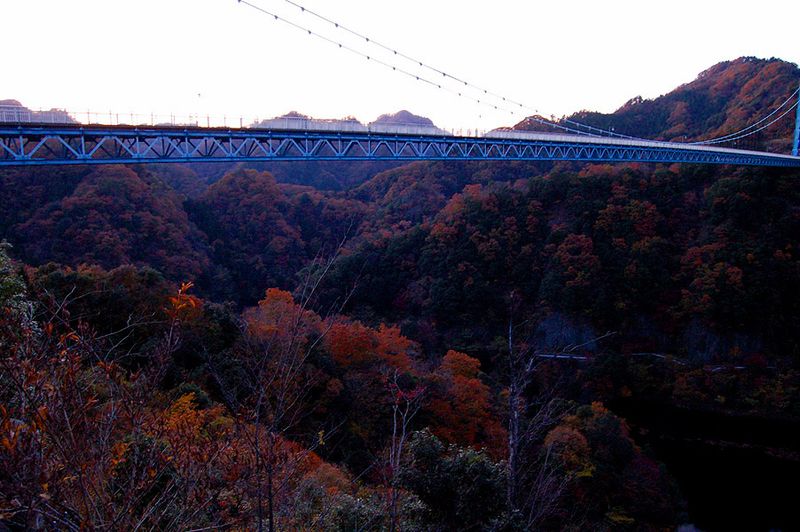 竜神大吊橋の駐車場に着いたのは16時45分。間もなく駐車場も閉鎖になる時刻でした。対岸の紅葉も肉眼では確認できない程に暗くなっており、ISO感度を最大(1600)に上げて、辛うじて数枚の撮影をすることが出来ました。