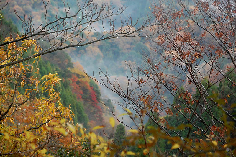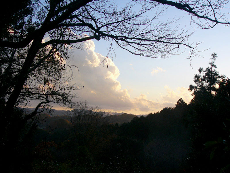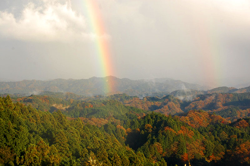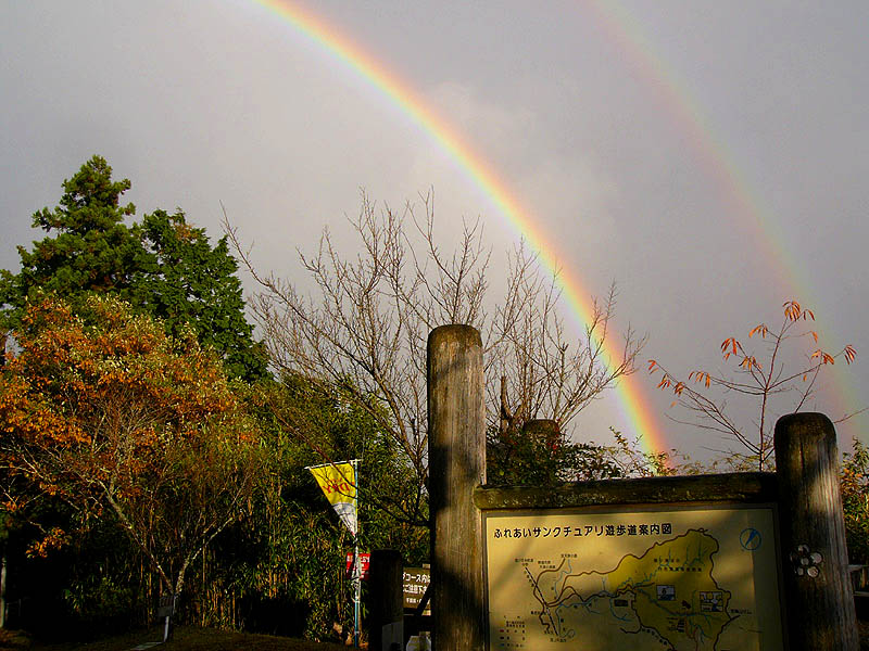 大福山の展望台を訪ねる頃にはすっかり雨も上がり、虹が幾重にも重なって見えます。駐車場に戻る頃はすっか り陽も落ち、暗い中を歩くことになりました。駐車場の車は私だけになり、心配した係の人が私の帰りを待って いてくれたようです。丁重に御礼をのべた後、帰途に着くことにしました。