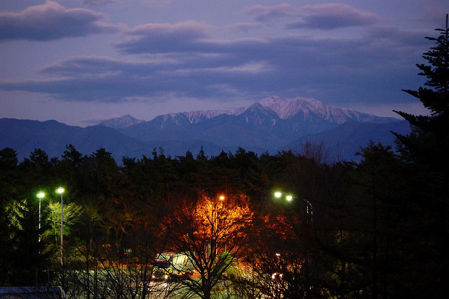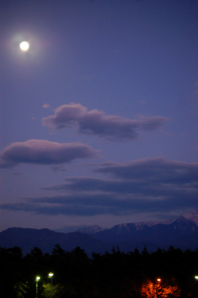 17:10 駒ヶ岳SA(上り)満月の月明かりに浮かぶ南アルプスの峰々