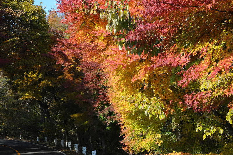 日塩もみじラインは、塩原側のゲート付近で最高の紅葉を迎えていました。