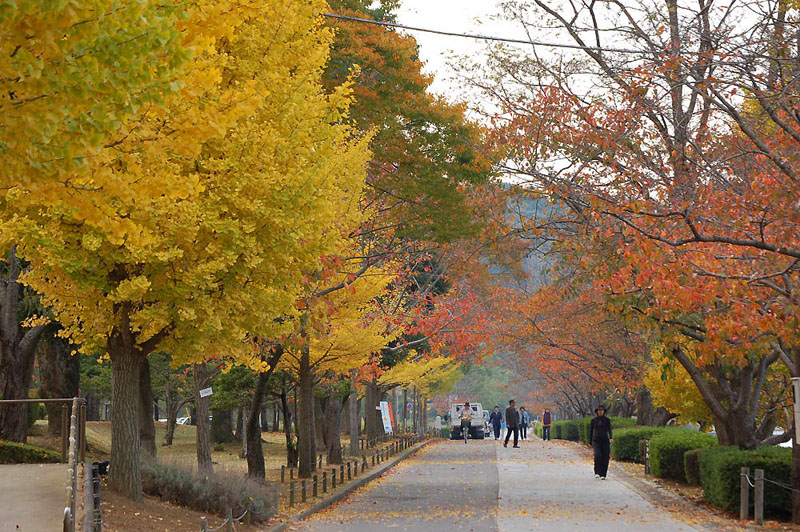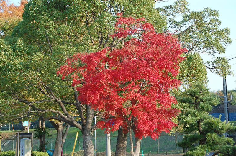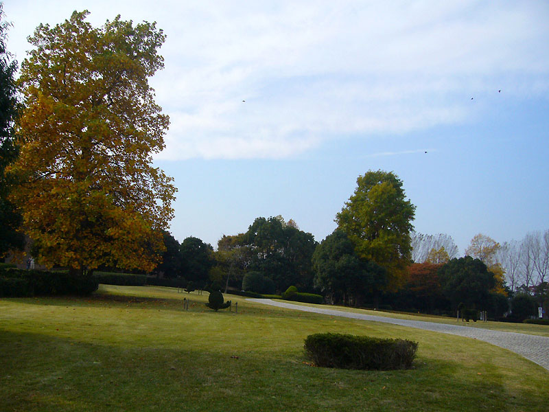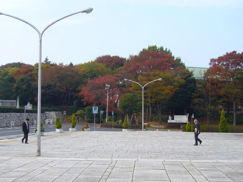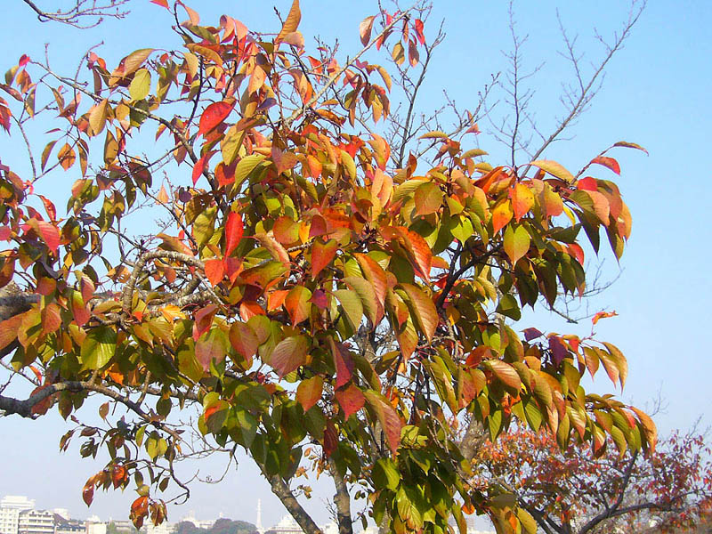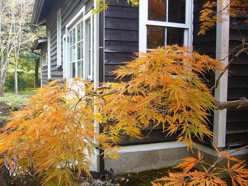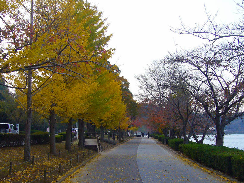 千波湖畔に、映画「桜田門外ノ変」のオープンセットが有料公開されていることを知り、少しばかりの寄り道です。 県立近代美術館の駐車場に車を止め、黒鳥を探しながら湖畔沿いを歩きます。ここでも紅葉をちらほらと見ることが 出来ました。暫く歩くと千波公園・さくら広場の一角にオープンセットがありました。