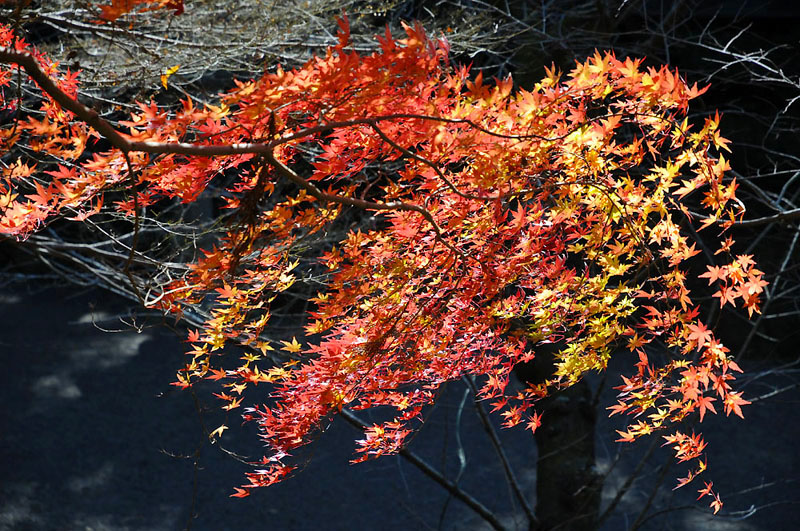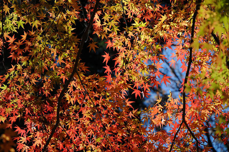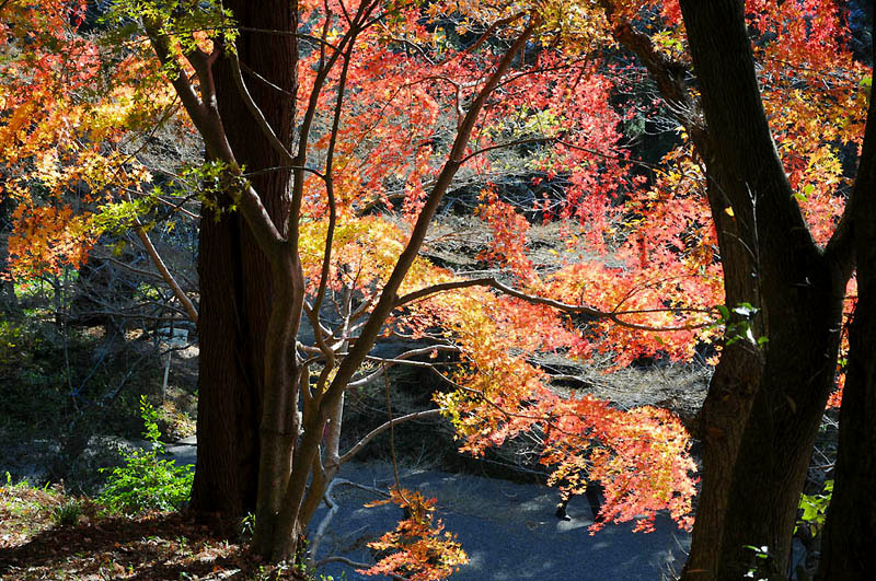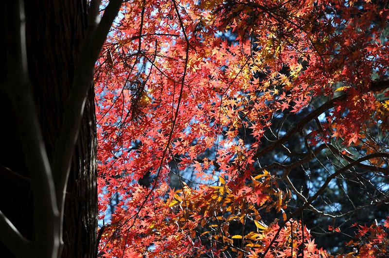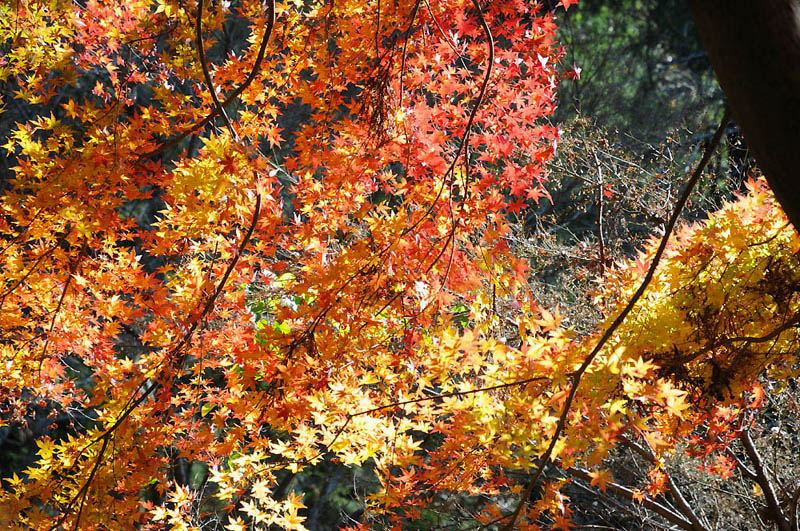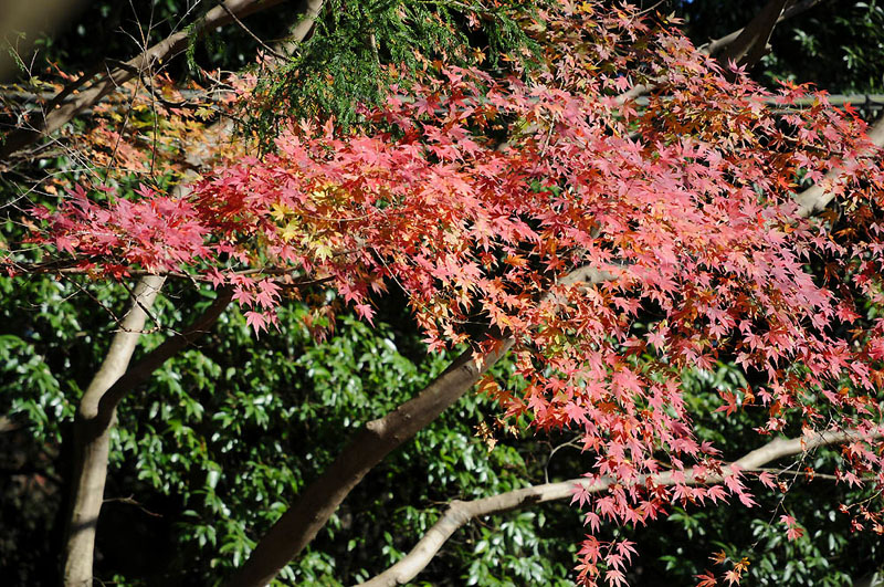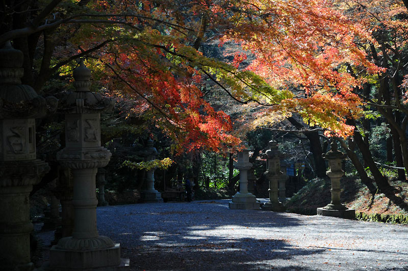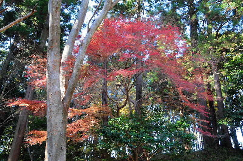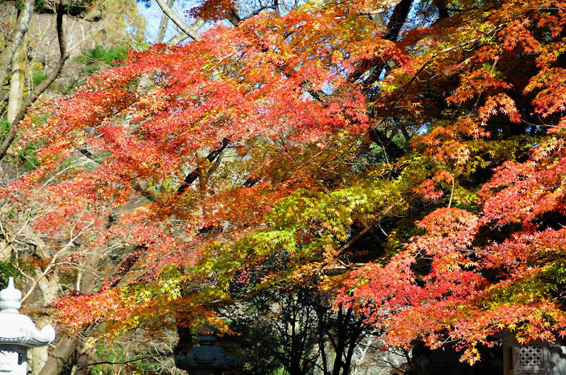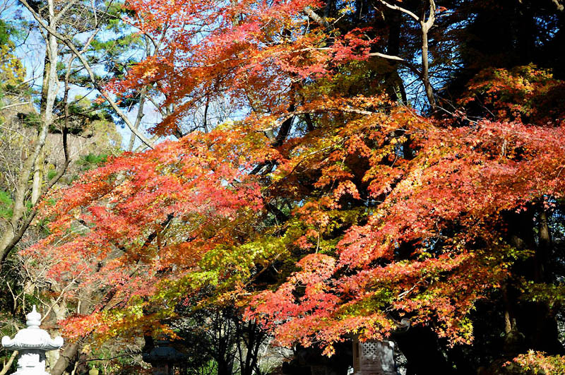 もみじ(楓類)が主体ですが、殆ど散った後でも未だ青葉の樹木も見受けられました。近年境内全域で綺麗に紅葉 することは少なくなったように感じます。