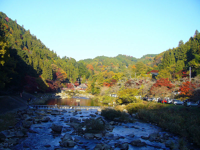 愛知県へ入る頃から渋滞が始まり、第一の目的地の香嵐渓になかなか到着することが出来ません。仕方なく第2の 目的地「大矢田もみじ谷」は時間の関係から立ち寄らないことになりました。その分、香嵐渓での滞在時間を長く 取ることになり、写真を撮る時間を稼げたのが幸いとなりました。大矢田もみじ谷は、次の機会を楽しみにするこ とにします。
