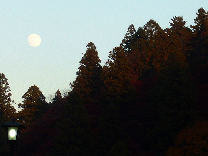 頃には陽も西に傾き、写真でも景色の色合いが異なるのが解るほどです。月の昇り始めた頃