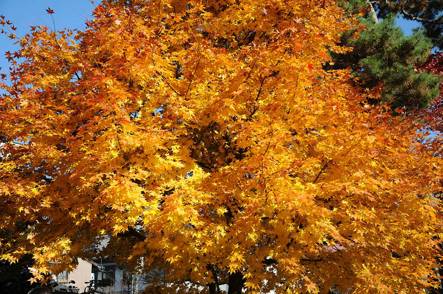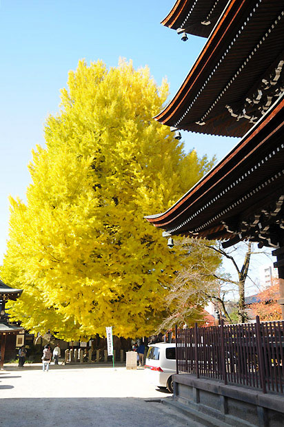 高山別院の駐車場を出てルート158を宮川に下り、朝市で家内と別れて飛騨国分寺に大いちょうを訪ねます。急い で写真を撮ると、今来た道を戻って「かじ橋」を右折し古い町並みを巡りました。この後高山祭屋台会館に廻ります が、時間が無くて建物の撮影を終えて、桜山八幡宮に参拝後急いで駐車場へと戻ります。出発の時刻は間近にせまり 満足な昼食を摂る余裕はありません。家内が買い置きしてくれた軽食を口にしながら帰途につくことになりました。