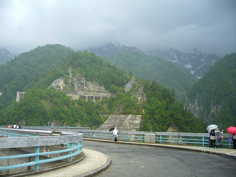 8:30発のトロリーバスで黒部ダムに向かい、黒部ダムの放水を見物しながら黒部湖駅へと進みます。しかし、 ここでは強い雨に祟られ、大半の時間を黒部湖駅での待合に費やしました。