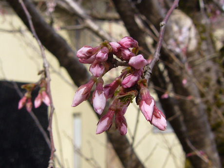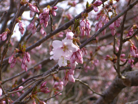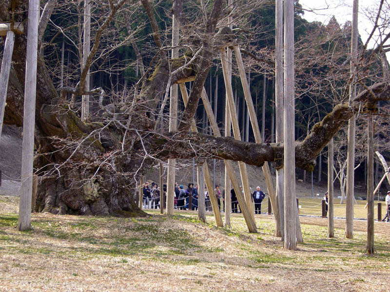 例年であれば満開の筈でしたが、厳冬の影響で今年は蕾も小さい状態です。ただ、樹勢は3大桜の名に恥じない見 事なものでした。再訪の折には、是非とも散り際の薄墨色を堪能したいものです。