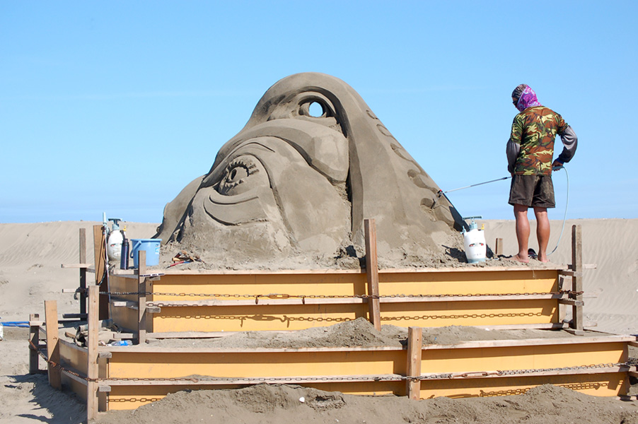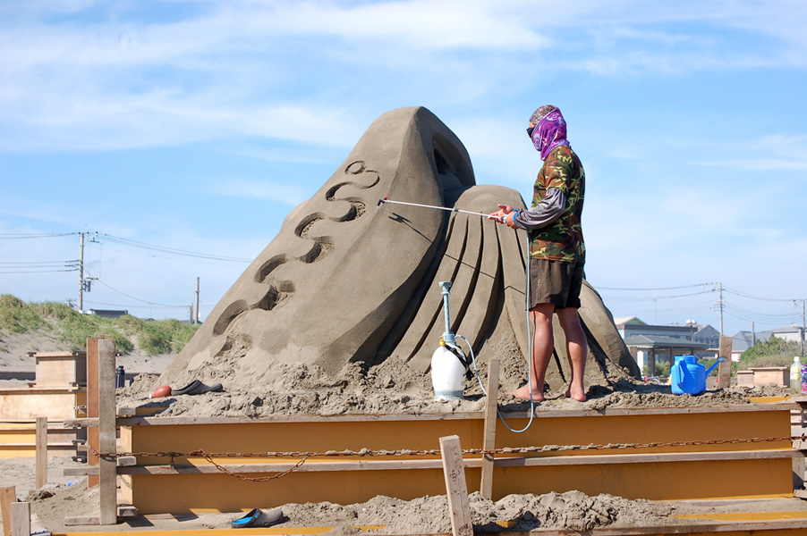 保坂氏同様、既に砂像製作が始まっていました。