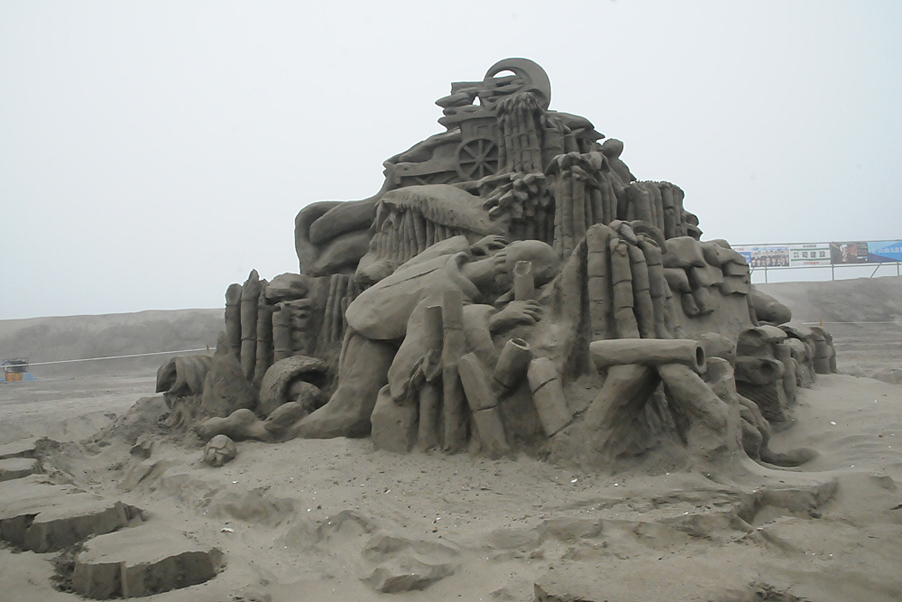 一般を含め他の彫像を見学する中、黒潮町チーム砂像の経時変化を追ってみました。