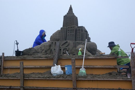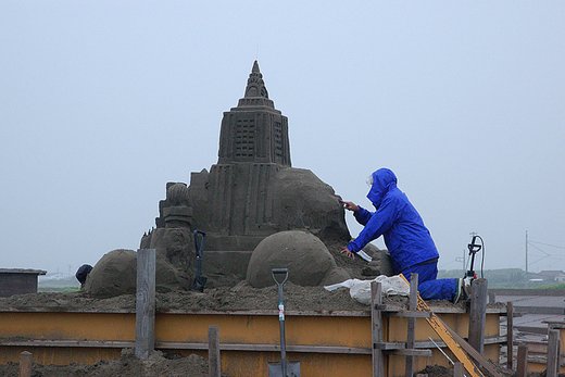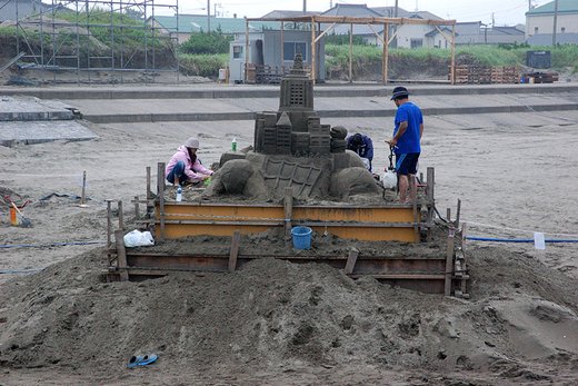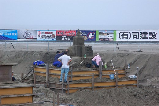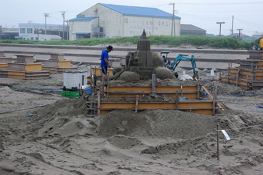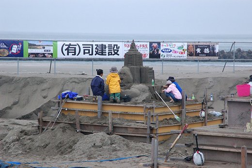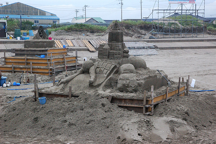 招待チームの製作は松木氏を残して終了しています。一般の製作はこれからで、4日時点では「あさひ砂像クラブ」のみでした。