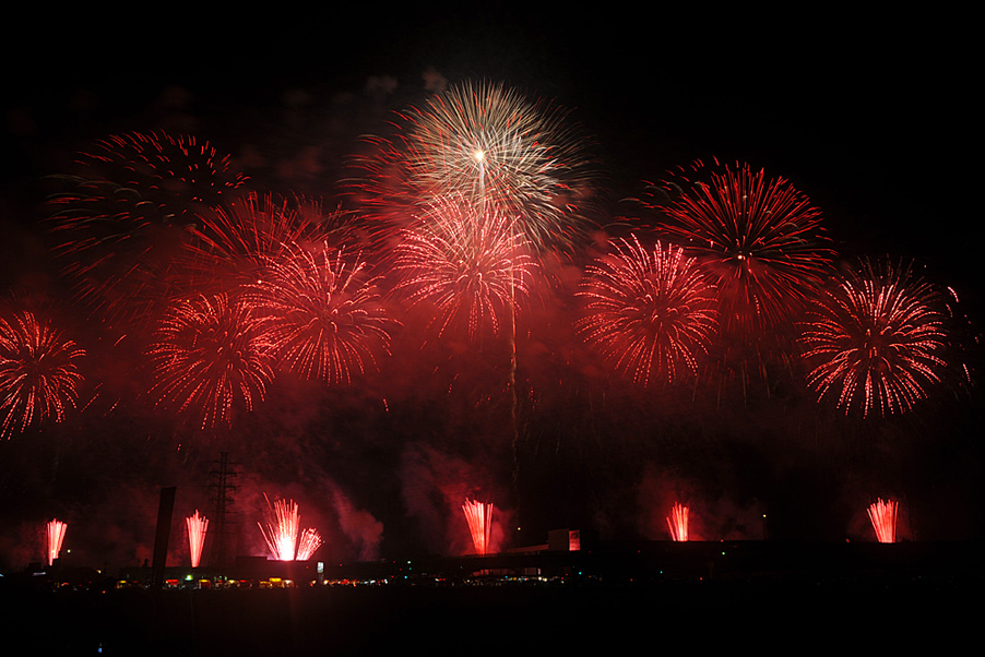 華やかさを超え度肝を抜かれるような大迫力のスターマイン。5分ほどの間にどれだけの花火が夜空を飾ったのでしょうか?