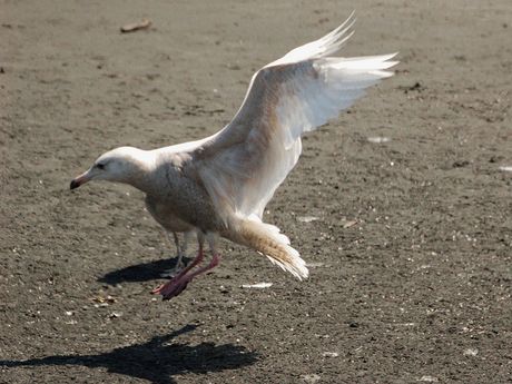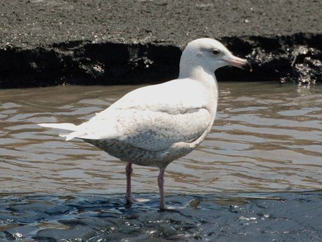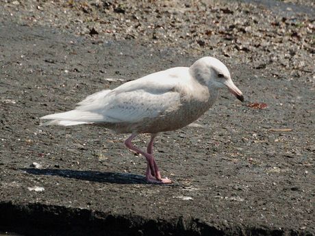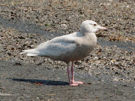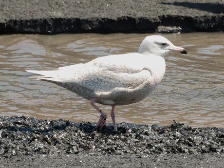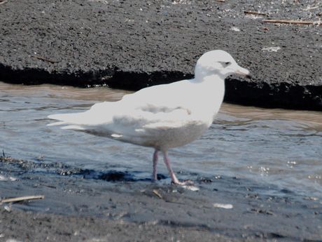 今回初見のカモメを探していた処、3年目の若鳥と思われるシロカモメが、他のカモメに混じっているのを見かけて 撮影してみます。この群れの中には、ウミネコやオオセグロカモメと供に、夏羽に換羽中のユリカモメもいました。