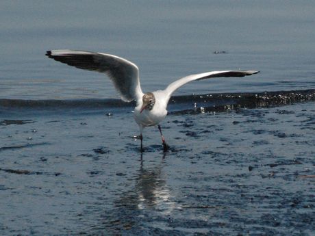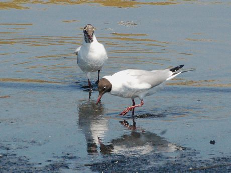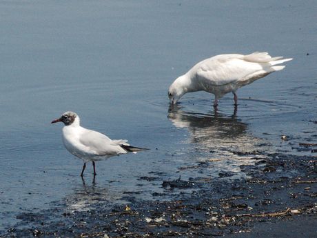 初見初撮りのシロカモメと夏羽に換羽中のユリカモメに対面しました。