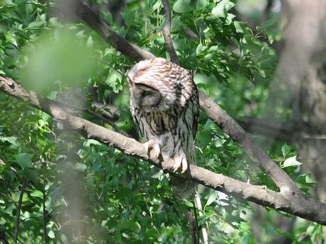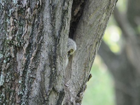 フクロウがちょうど育雛を行っており、夕方には給餌の様子を見られることもあり、多くの人が集まってきました。 私自身は帰宅があまり遅くなるのも気懸りとなり、餌やりの場面を目にすることもなく、公園を後にしました。