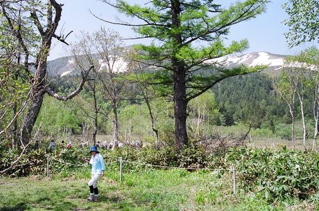 ◎鳩待峠より1時間弱の下りで、山の鼻(上田代)に到着。眩いばかりの初夏の陽と、目に染みるほ