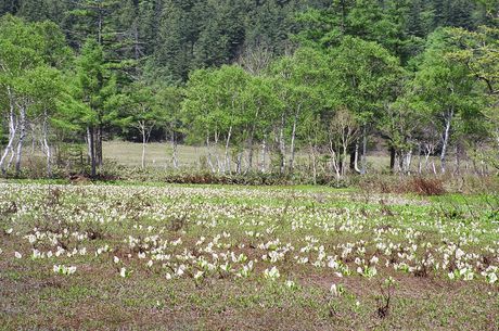 ◎最盛期は過ぎていたものゝ、彼方此方の群落で楽しませてくれた水芭蕉。
