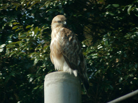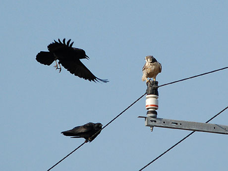 ハヤブサとカラスのバトル発生
