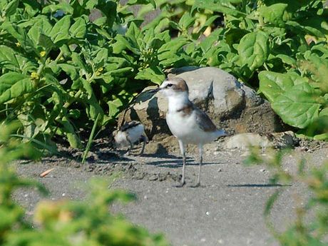 シロチドリ親子