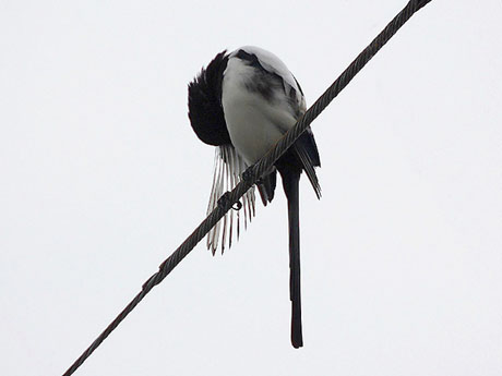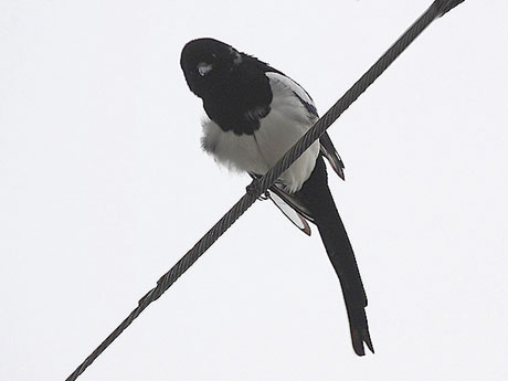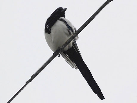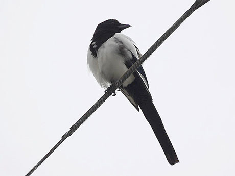 翌日も朝から飛来地を訪ねたのですが、天候が思わしくなくて早めに大牟田へと向かいました。同窓会は夕刻からの ため持て余した時間に、以前カササギを見かけた場所へと向かってみました。小一時間ほど歩き回り、やっとカササ ギのペアを見つけて写真を撮り始めましたが、雨模様となり綺麗な姿は収めることが出来ません。どうやら九州での 鳥見は鬼門のようですが、これに懲りずに機会があれば再度訪ねたいと思います。