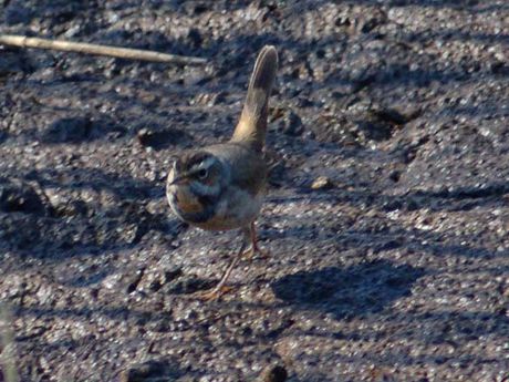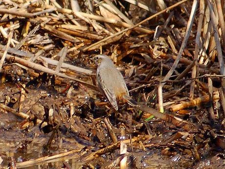 数時間後に初撮りの「クイナ」が現れ、坊主だけは避けることが出来ました。これで気力も維持できて待つこと5 時間近く、やっと「オガワコマドリ」の登場です。でも体調の不良から、フレーム内にあわせることやピント合わ せが上手く行かずに、証拠写真程度に終わりました。体力・気力を使い果たした遠征になりましたが、これに懲り ずに鳥見の挑戦を続けたいと思っています。