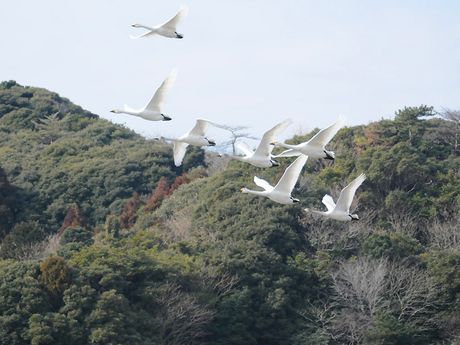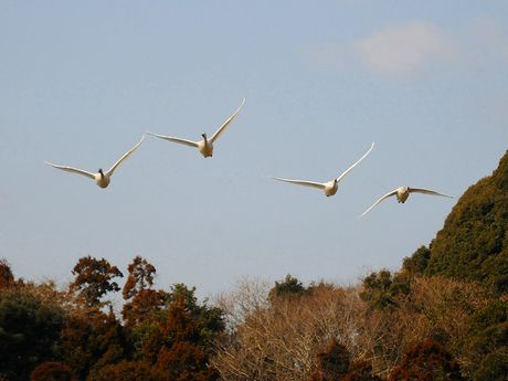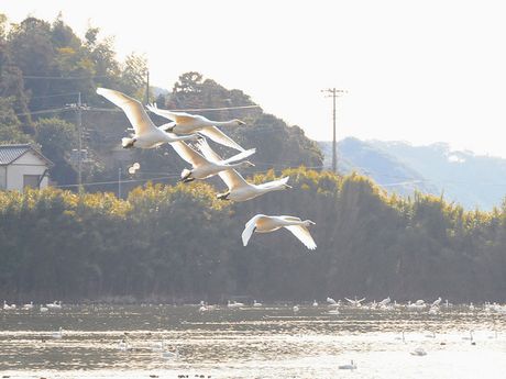 2月に入り、夏目の堰のコハクチョウを覗いてみました。