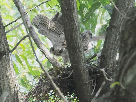 鳥見の友人から連絡を受け、翌日に早速出掛けてみました。育雛を行っており、間もなく巣立ちを迎えようとしてい ます。このため、場所の特定を避けるべく詳細は記しません。