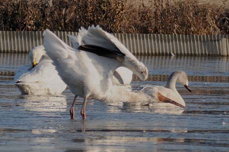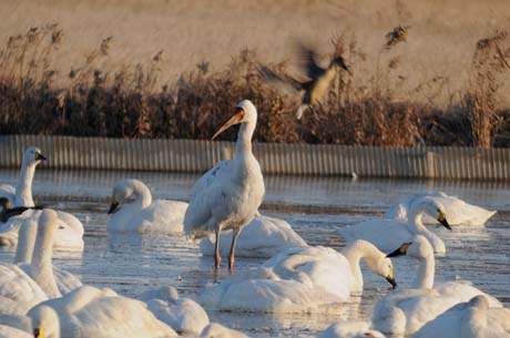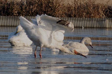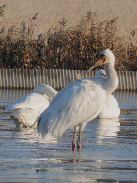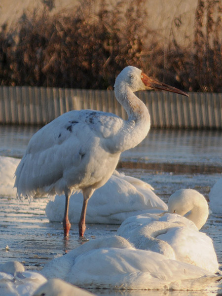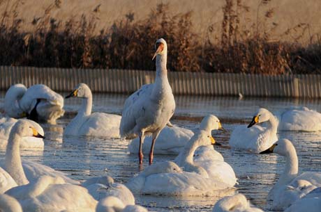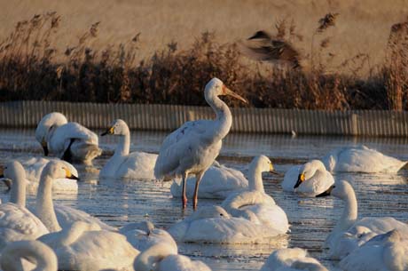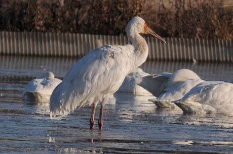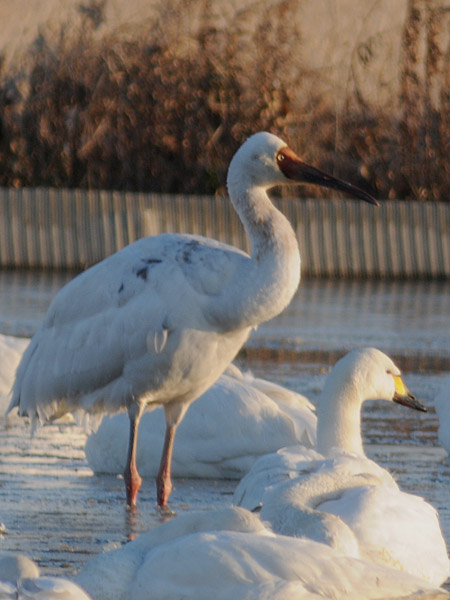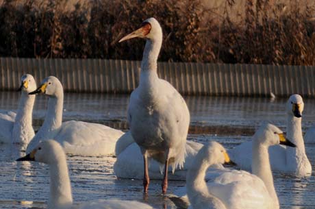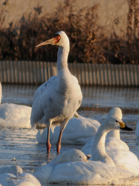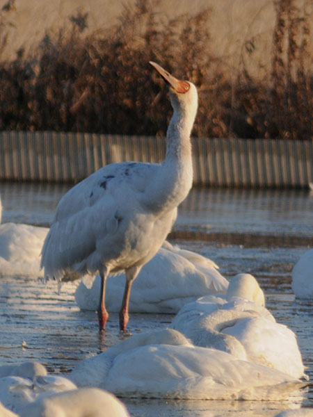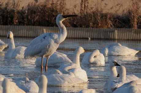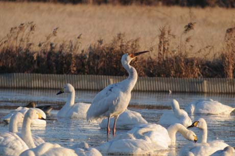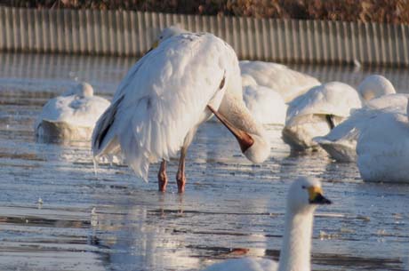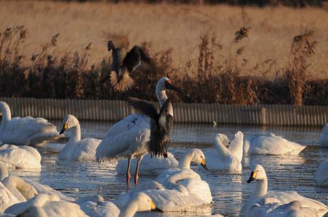 コハクチョウやソデグロヅル、何時もは7時頃に餌場へ移動するそうですが、今日はなかなか飛び立つ気配を見 せません。大晦日の忙しい時でもあり、後ろ髪を引かれる思いで8時過ぎに現場を離れ帰宅の途に着きました。 空を舞う鶴の姿を見るのは、また次の機会を待つことにします。
