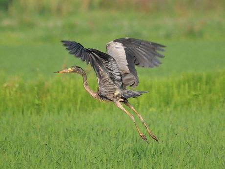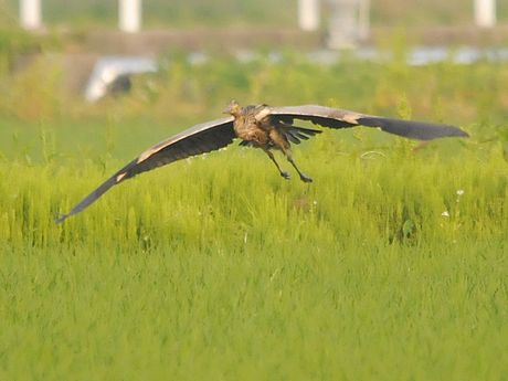 また、私見ですが、アオサギより一回り小さかったこと、頸が細く見えること、翼角が白くないこと等から、当面ム ラサキサギとして扱うことにしました。若し間違っていましたら、ご指導下さい。よろしくお願い致します。
