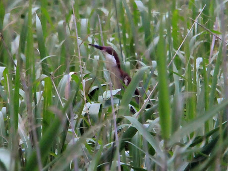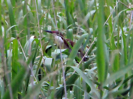 ここでもrainさんと遭遇し、待ち時間を雑談で過ごします。焼け付くような日差しの中、オオヨシゴイの出 現を待ちますが、なかなか出てくれません。バーダーが多くなったこともあり、オオヨシゴイも警戒しているの でしょうか?