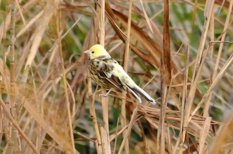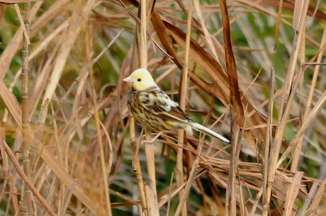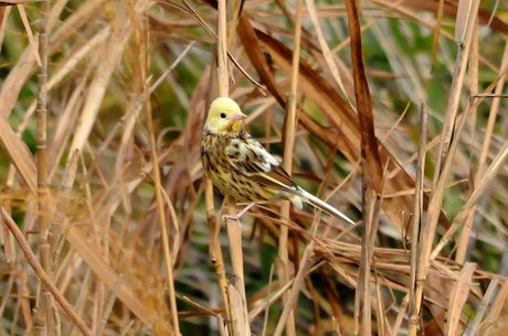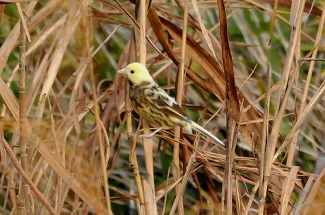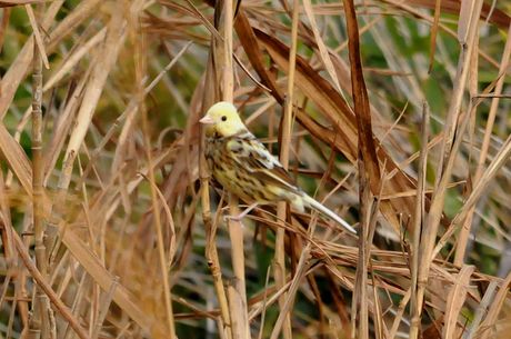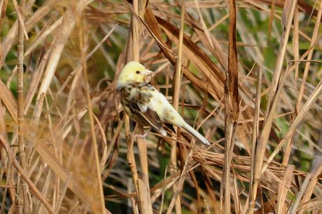 11月中程のMFにて探鳥時のことでした。鳥友のrainさんに偶然発見された、部分白化のアオジ。