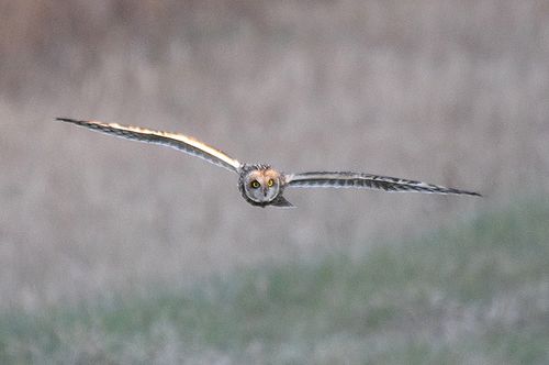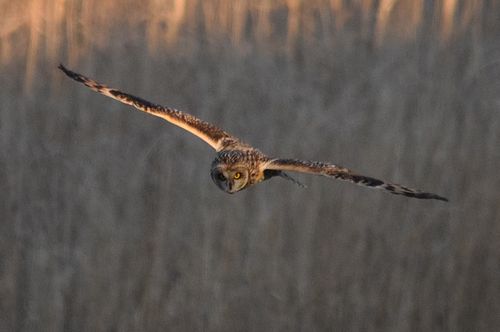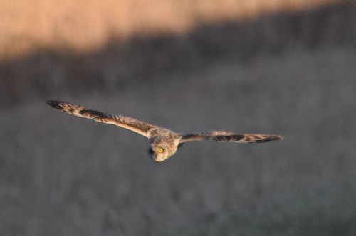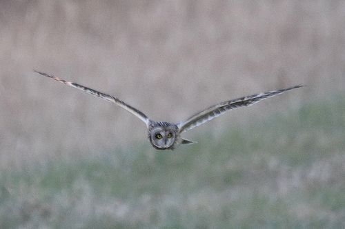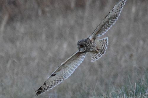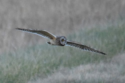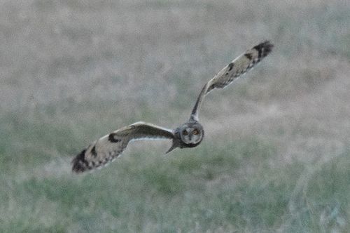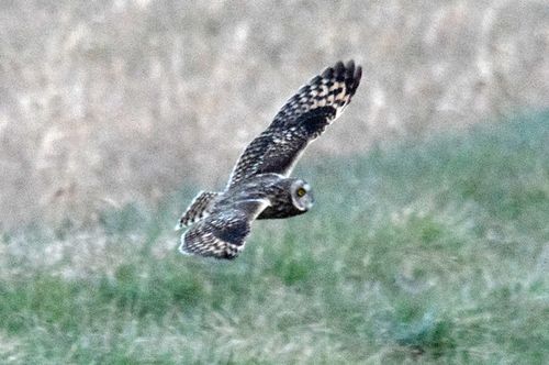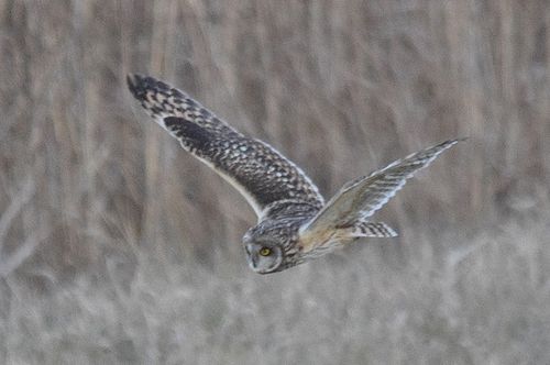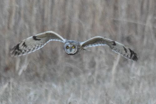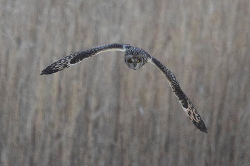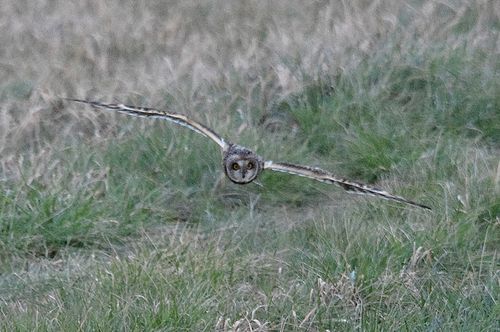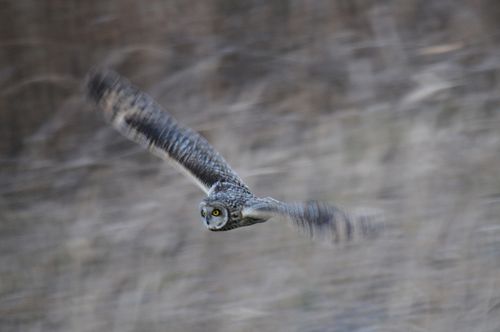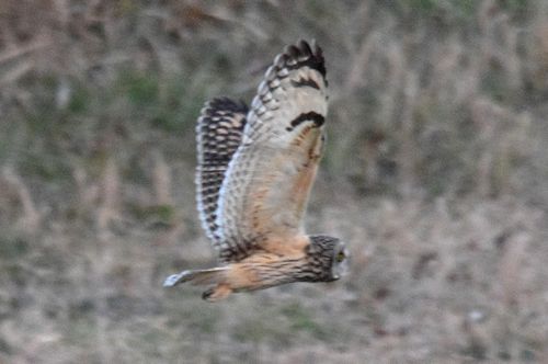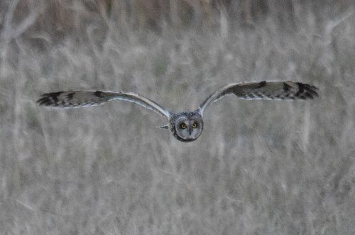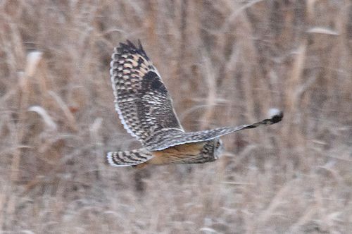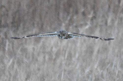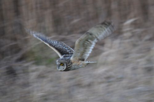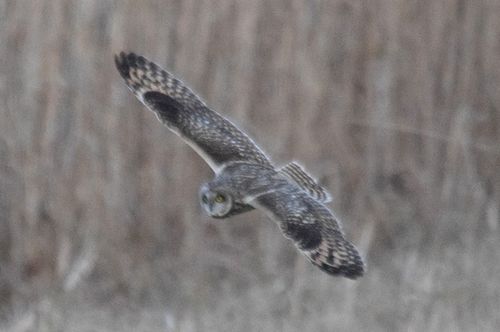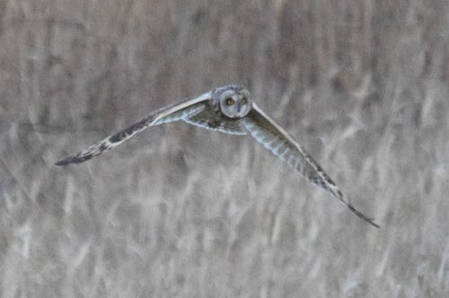 8日はコミミヅクに替り、目の前をハイイロチュウヒの♀が飛び、慌てたためにピント(マニュアル)が甘くなっ てしまいました。