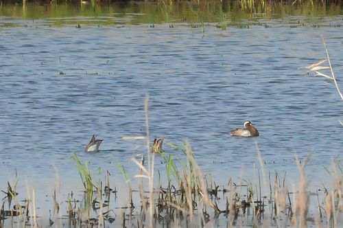 15時に現場集合でスタートし、チュウシャクシギが塒入り前に集まる田圃を確認後、その他の野鳥を探しながら 堤防沿いに歩きます。その中でハシビロガモの入っている田圃にシマアジが2番いるのが確認されました。距離が あり、満足な写真は撮れませんが初見初撮りとなるため、敢てチャレンジしてみました。
