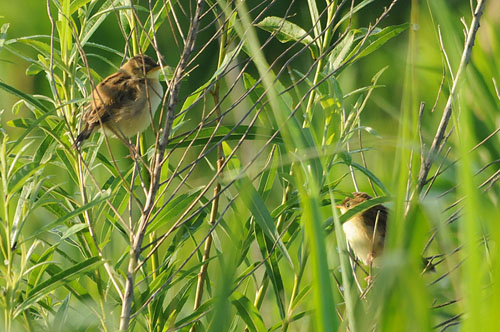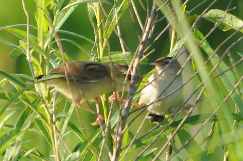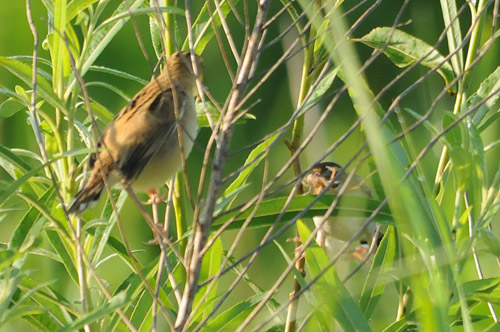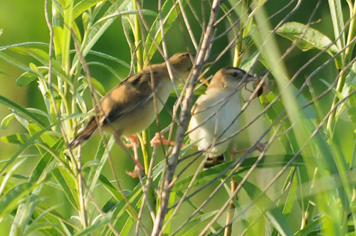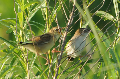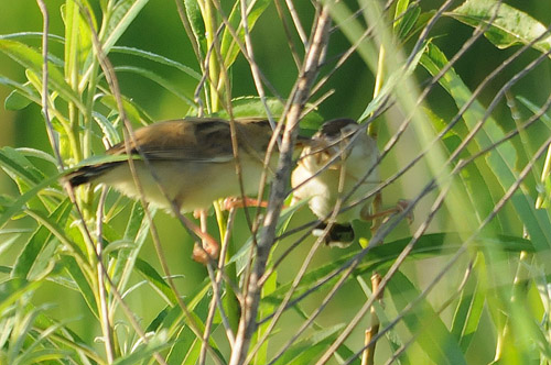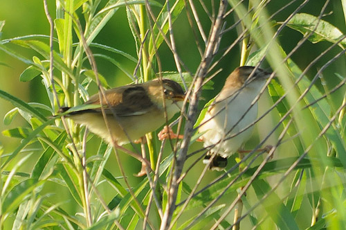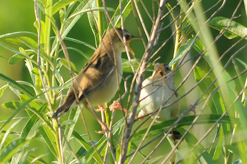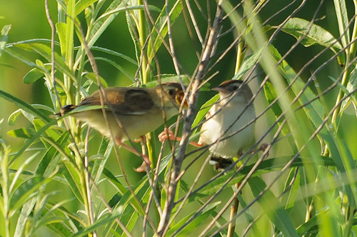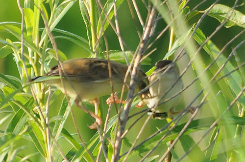 セッカ幼鳥(左)と親鳥(右)