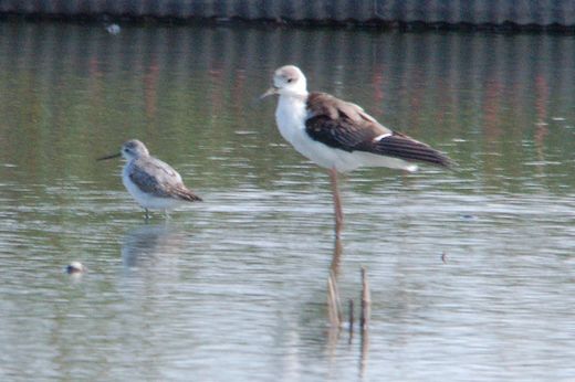 コアオアシシギとセイタカシギ 10/12 茨城県にて