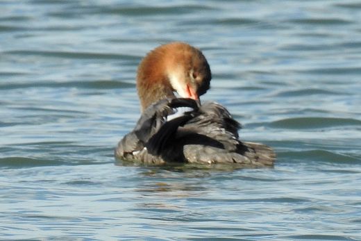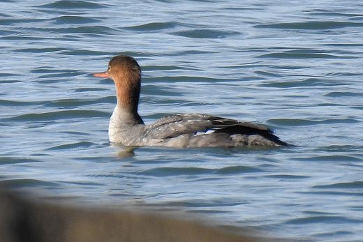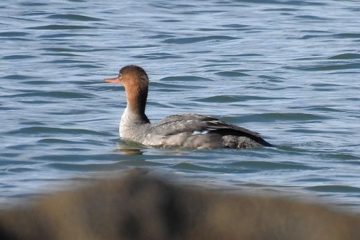 先日のフルマカモメを求めて、再度海辺を訪ねてみました。しかし、今日はその姿がありません。散々歩き回った結 果、短い時間でしたがウミアイサが挨拶に姿を現してくれたのが、せめてもの救いとなりました。