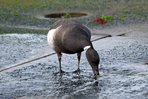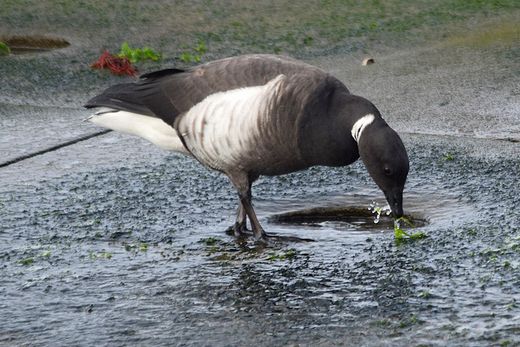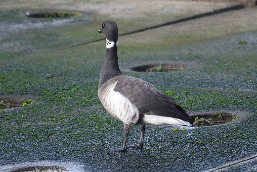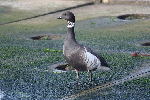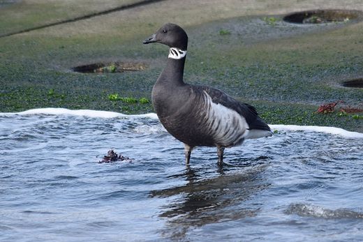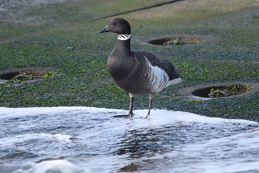 スズガモやオオバンが泳ぎ回る中に1羽だけコクガンが見られました。年末に初見初撮りの野鳥がまた一つ増えま
